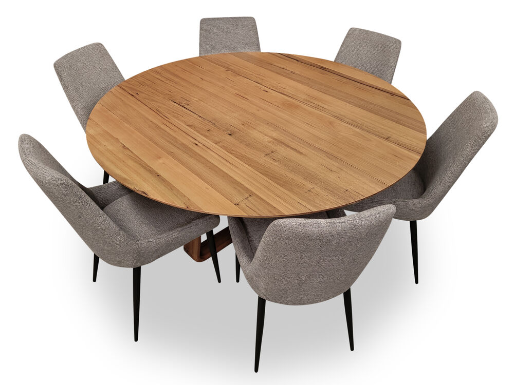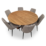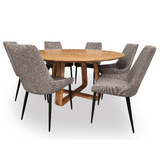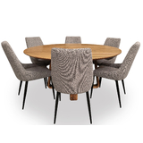 Airley Wormy Chestnut 1600 Round Dining Set with 6 x Airley Fabric Chairs