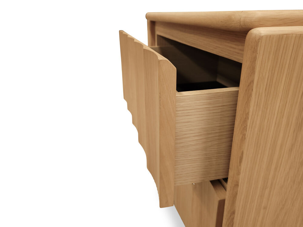 Crafted from engineered American Oak and finished in a clear matt varnish, the smooth grain character and light earthy tones will bring a calm and refined presence to your living space.
