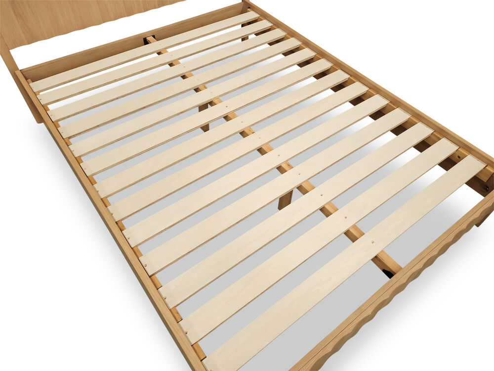 The bed frame structure is solid and sturdy with a central support rail and thick slats. The drawer bases are lined with black felt soft closing metal drawer runners allowing the drawers to open and close smoothly.