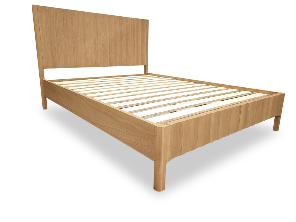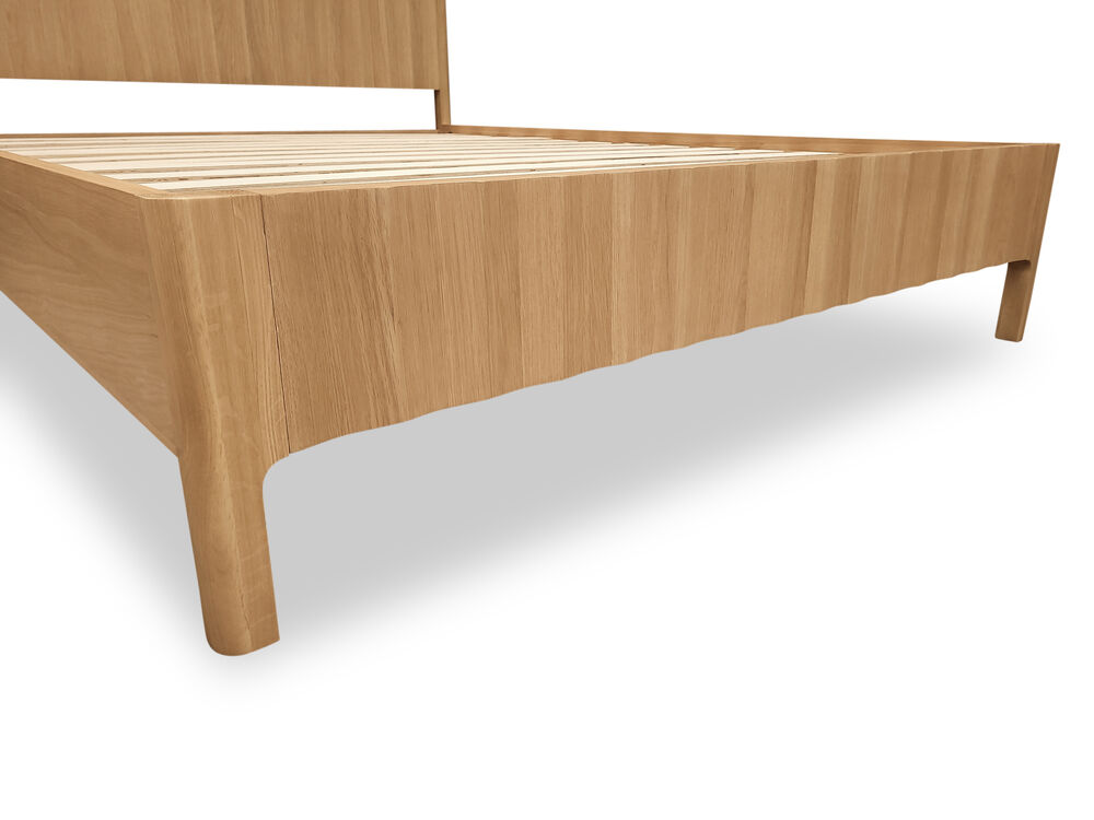 Crafted from engineered American Oak and finished in a clear matt varnish, the smooth grain character and light earthy tones will bring a calm and refined presence to your living space. The bed frame structure is solid and sturdy with a central support rail and thick slats.