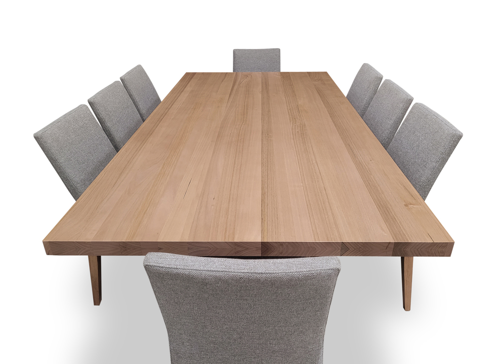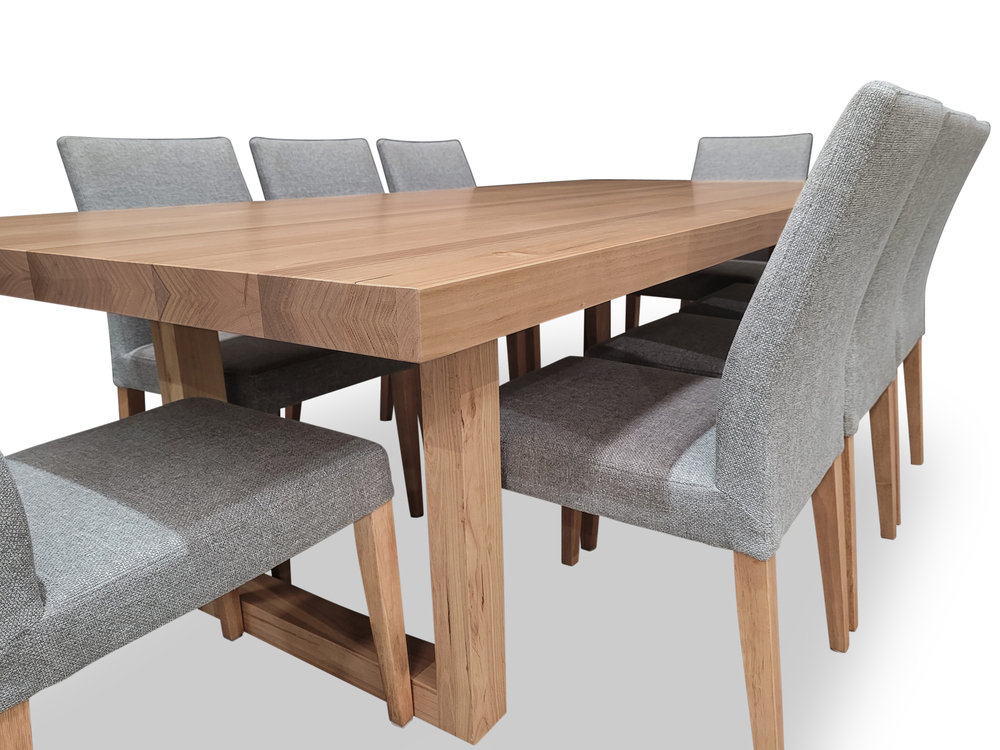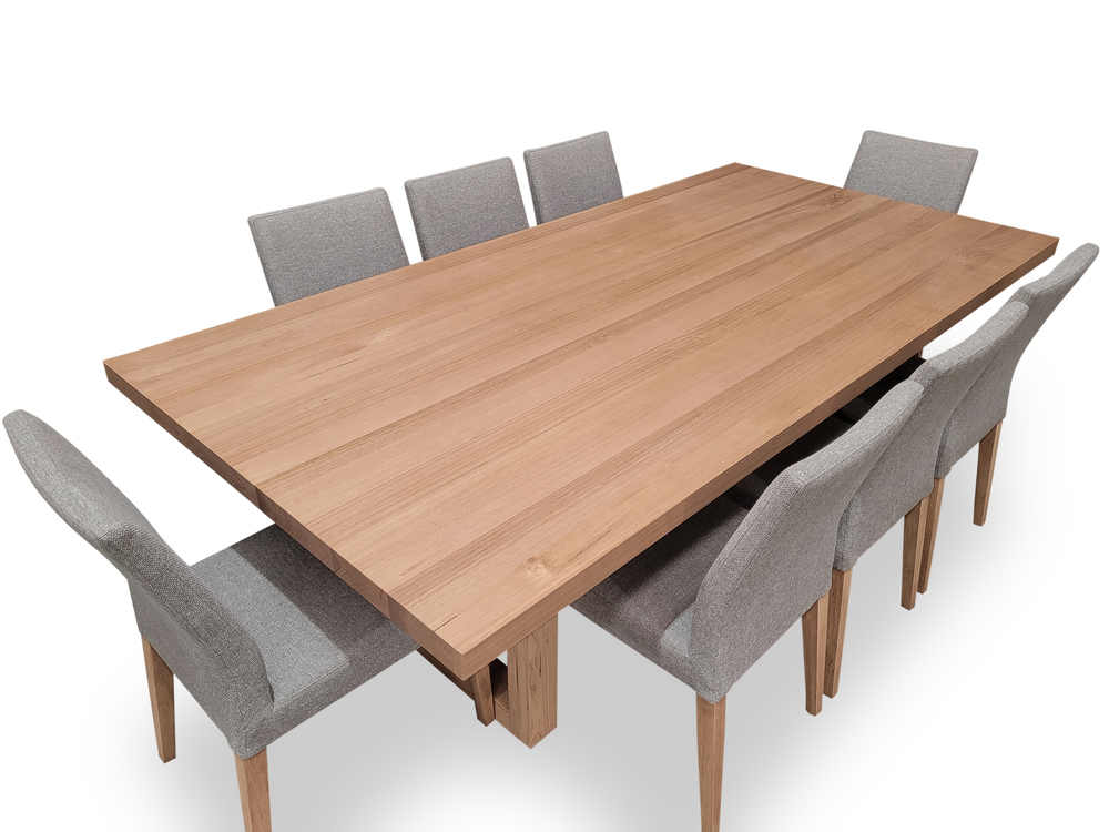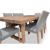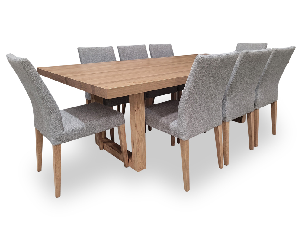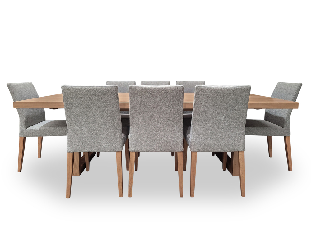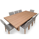 Bondi Tasmanian Oak 2400 Dining Set with 8 x Juni LIGHT GREY Chairs