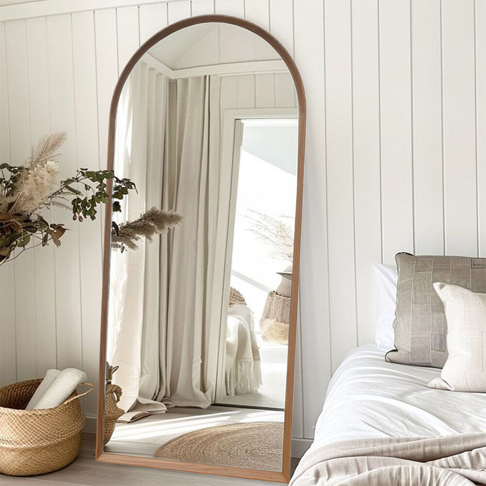 Crafted from all solid American Oak, in a natural finish with light fresh timber tones. A full-length mirror is one of the final touches that make a bedroom feel curated, cohesive, and ready to live in, not just furnished, but thoughtfully designed. Arched mirrors are a great way to bring a subtle architectural moment into your room, because the eye naturally follows the upward curve. Arched mirrors make ceilings feel higher and rooms feel more open, harmonious and complete. A practical and timeless piece you'll appreciate every time you walk past it.