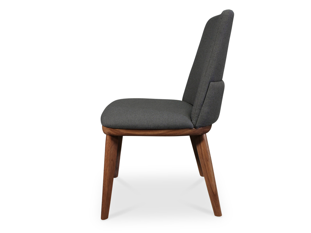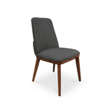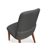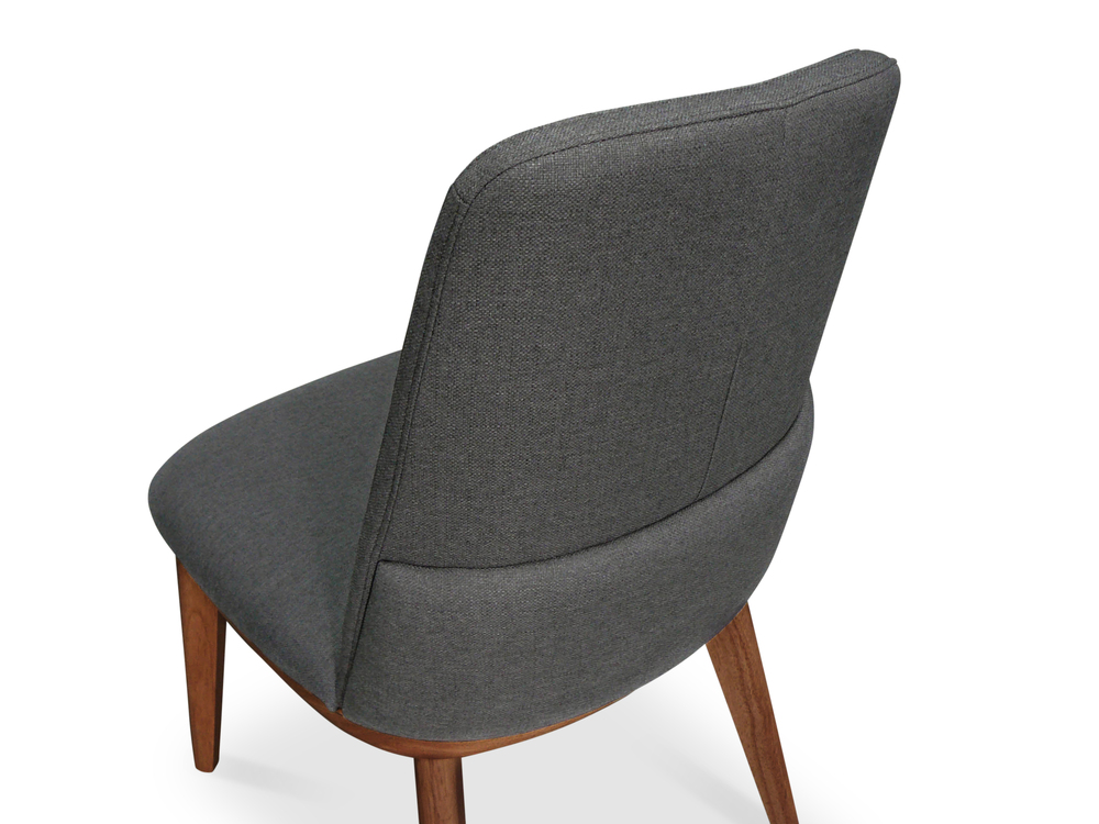 Eva brings comfort, style and functionality with a distinctive design. Featuring a sturdy build with natural hardwood chair base and comes fully assembled. Upholstered with a soft and durable woven fabric for added comfort and with curves in all the right places edges Eva makes for a sleek, contemporary look.