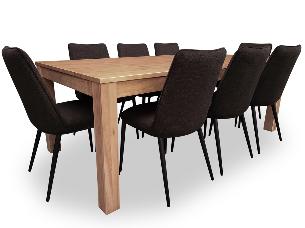 The Dining Tables are made from all solid timber, all you will need to do is attach the legs and you are ready for your next dinner party. Perfectly partnered with the Grove chair, available in Grey and Charcoal colours - they are upholstered in fabric which is soft to the touch and have a sturdy metal base.