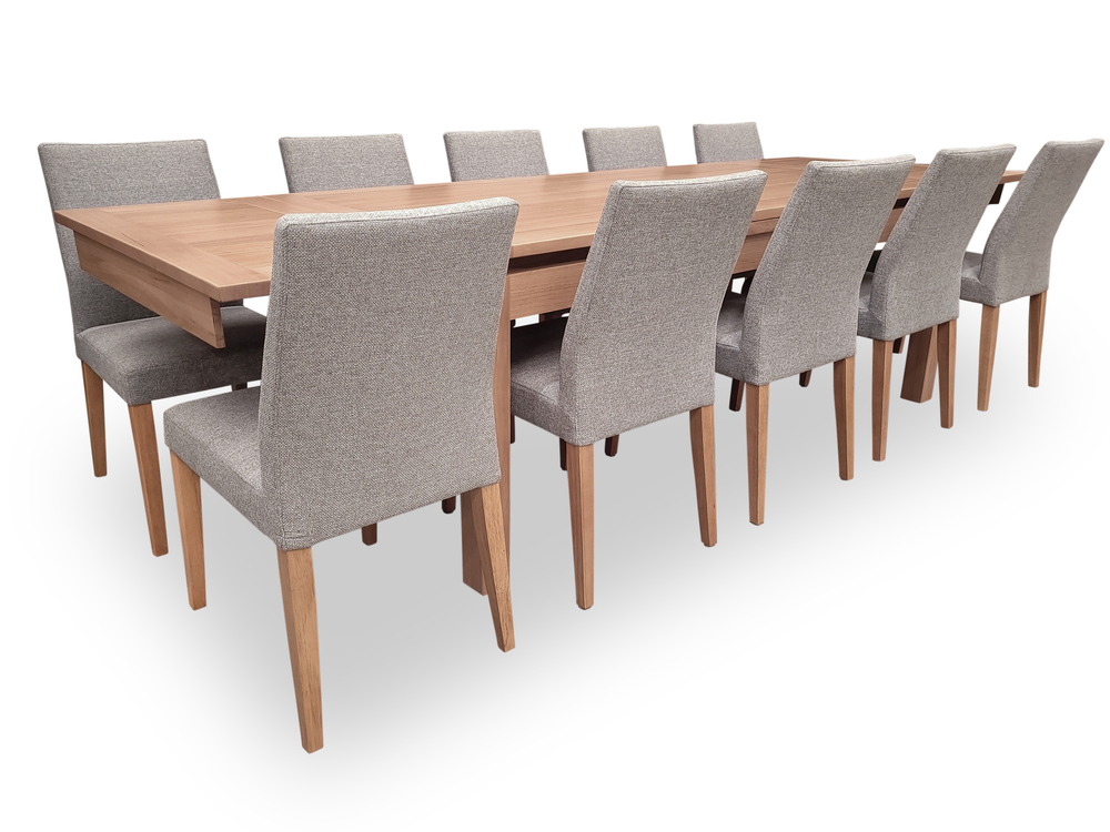 Kallista Tasmanian Oak 2050-3050 Extendable Dining Set with 10 x Juni LIGHT GREY Fabric Chairs
