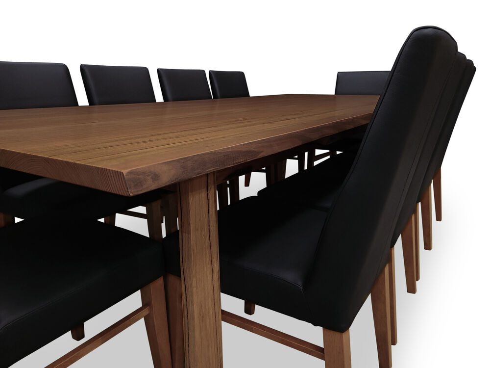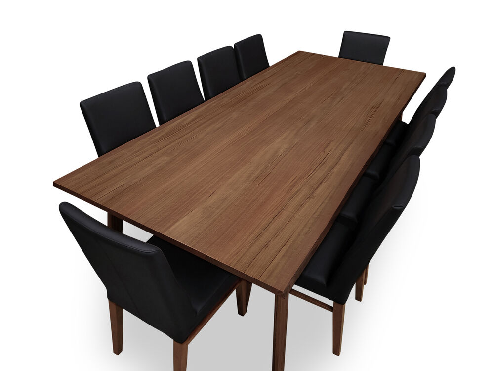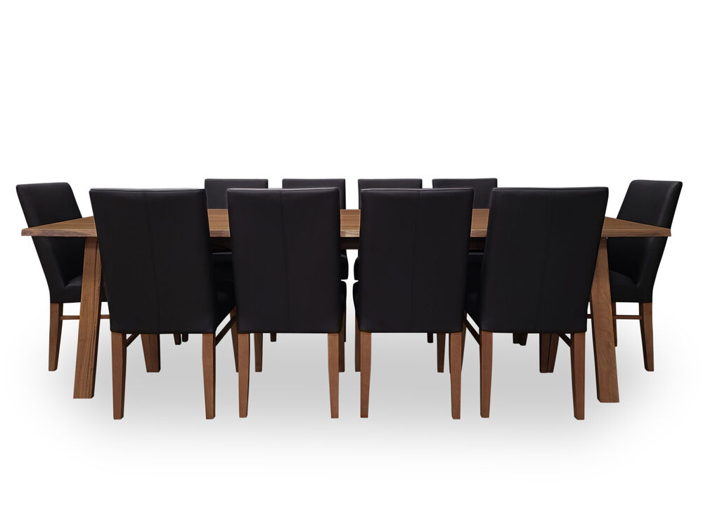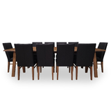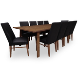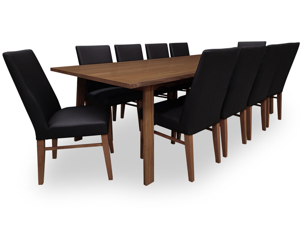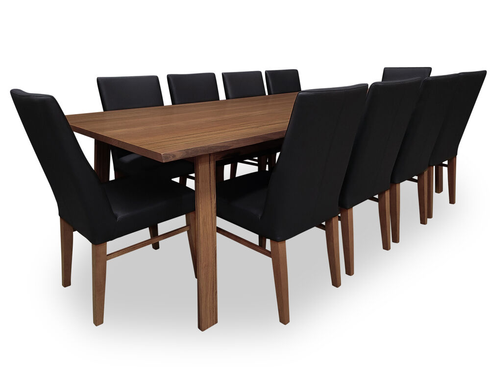 Marri Eucalypt Timber 2700 Dining Set with 10 Mid Back Contour BLACK Chairs w Blackwood Leg