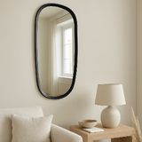 Crafted from solid American Oak with a Matt-Black finish. Organic shaped mirrors bring a sense of calm.. with harmonious pebble like flow they make for a practical and unique focal point for your space, softening your room instantly. A practical and timeless piece you'll appreciate every time you walk past it.