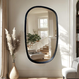 Crafted from solid American Oak with a Matt-Black finish. Organic shaped mirrors bring a sense of calm.. with harmonious pebble like flow they make for a practical and unique focal point for your space, softening your room instantly. A practical and timeless piece you'll appreciate every time you walk past it.