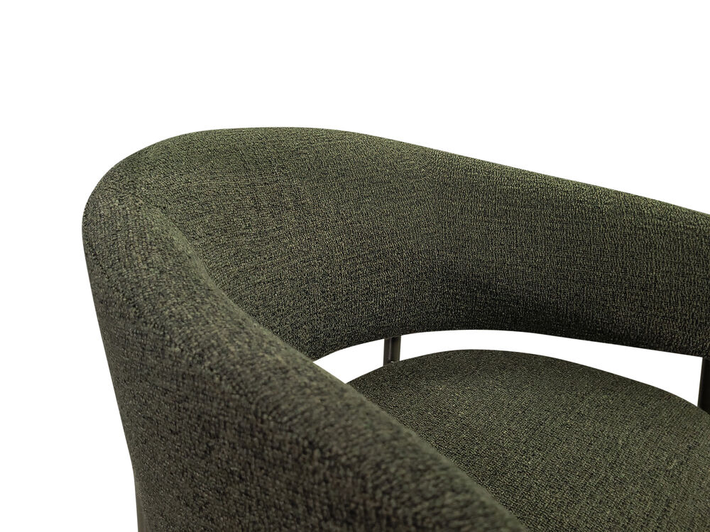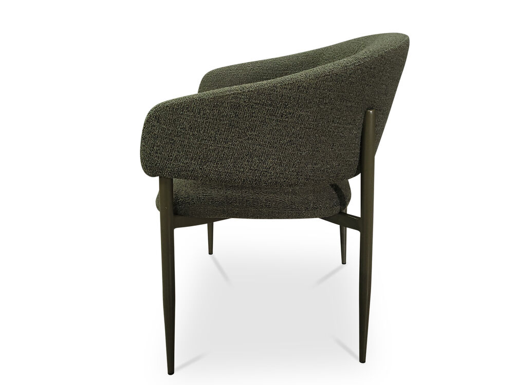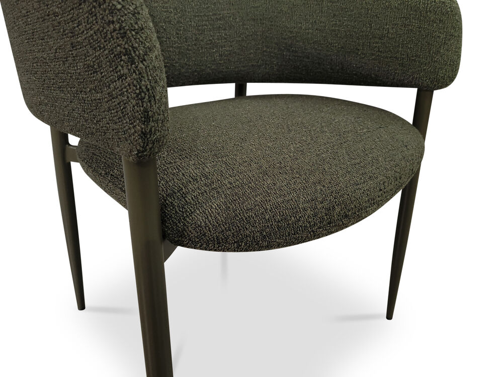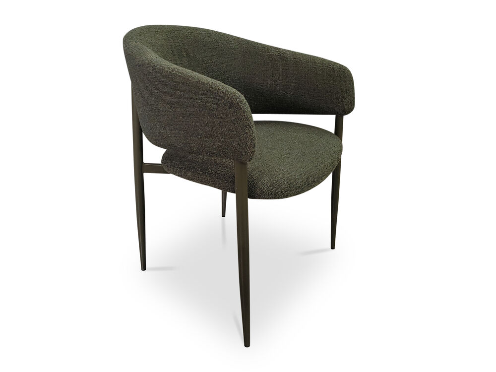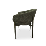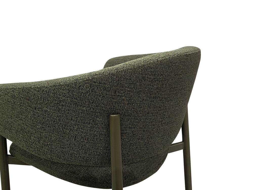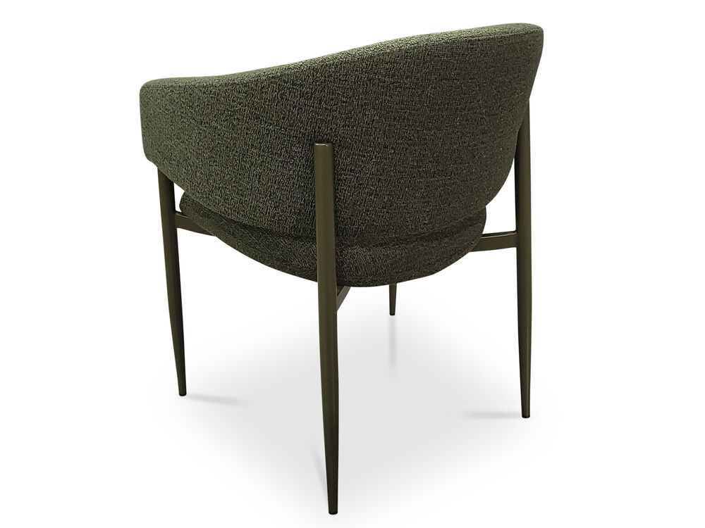Meet the Sonia Dining Chair - Upholstered in olive green bouclé, Sonia's wraparound back and generous proportions will have you entertaining with serious comfort and style. Beautifully made, fully assembled, and ready to enjoy.