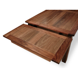 Crafted from Tasmanian blackwood timbers. For those of you in the know you can attest to the timbers truly brilliant character, it actually comes up quite well in the photos but its hard to give the timber justice it deserves. It has lighter and darker streaks of colour running through and is beautifully finished with a satin varnish which allows its natural colour to beam through. The extensions function beautifully with a snazzy telescopic mechanism which allows the extension to open from each end (independently if required), and are very sturdy when fully extended.